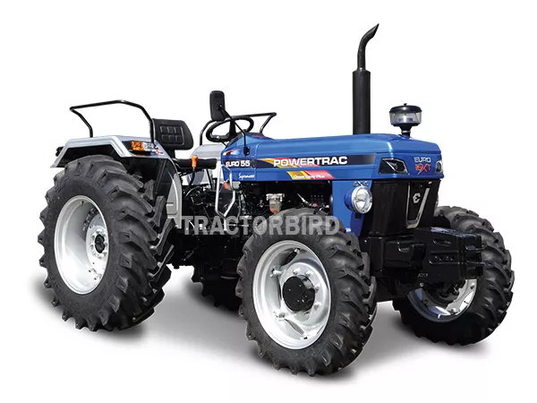 Powertrac Euro 55 tractor is a 55 HP model priced between ₹ 8.28 Lakh to ₹ 8.62 Lakh. It has a fuel tank capacity of 60 litre . The engine capacity of this tractor is 3682 CC with 4 cylinders. Additionally, it comes with 8 Forward + 2 Reverse and produces 46.8 HP PTO and the lifting capacity of the Powertrac Euro 55 is 1800 kg.